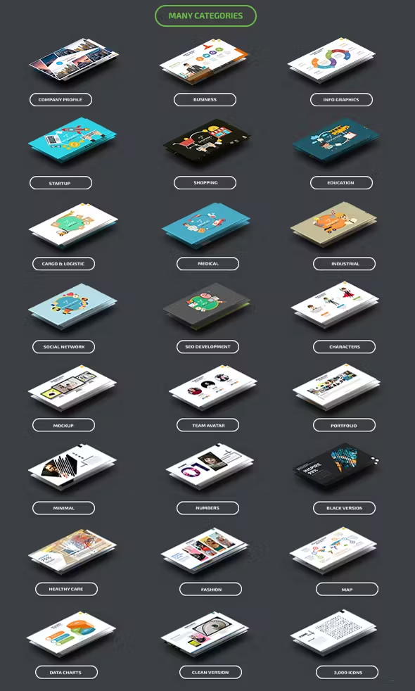 Over 100,000+ Clean, Modern, business, medical, SEO development, character, education, company presentation & Moreβ¦